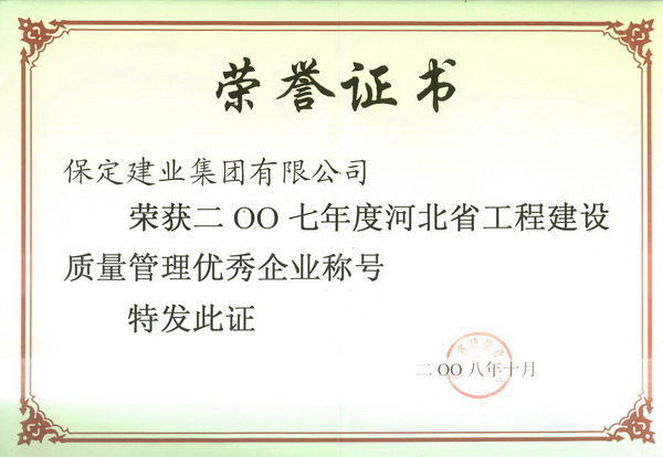 2007年河北省先進(jìn)建筑施工企業(yè)