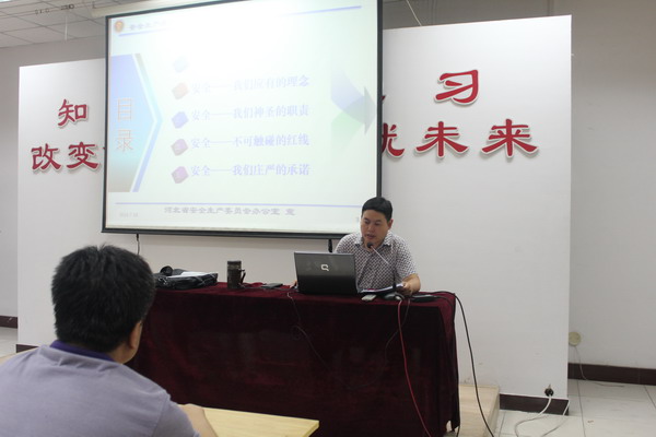 2014年7月18日,集團公司安全部組織,在培訓中心電教室,組織了安全生產盡職盡責警示教育。這次宣講活動,是河北省安全生產履職盡責警示教育活動的一部分,河北省安全生產履職盡責警示教育活動是經河北省政府領導同意、河北省安全生產委員會組織開展的。利用安全生產月的時間,對全省11.6萬生產經營單位的主要負責人進行一次“安全生產履職盡責警示教育”。目的在于讓大家進一步了解全國全省安全生產形勢,明確自己身上所負的重任,強化紅線意識,促進安全發展。